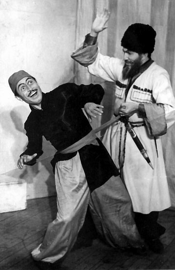 - Республика сейчас сама должна оплачивать обучение специалистов - режиссеров, художников, которые, закончив столичный вуз, вернутся работать сюда. Это большие деньги. Вот к чему привела перестройка и демократия. Что же касается актеров, то единственный выход - готовить их в Северо-Кавказском институте культуры в Нальчике. У меня есть мечта - хочу сам студию набрать интернациональную и воспитать новое поколение актеров. Обычно берут с 10 класса, а я хочу с 8-го. У нас в театре много актеров, которые скоро уйдут. Нужно готовить новых…