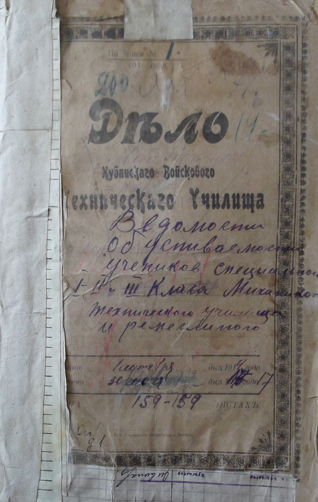 В архиве отложились ведомости по годам об успехах и поведении учеников III специального класса Майкопского низшего Механико-технического училища Императора Александра III. Обратимся к ведомости училища за 1914-15 учебный год. В ней присутствуют имена четырех учеников, являющихся, по нашим данным, выходцами из Карачая. К сожалению, в ученических ведомостях национальная принадлежность, как правило, не указывалась. При этом в графе о сословной принадлежности для выходцев кавказских народов указывалось «горец», вследствие этого нам приходилось привлекать для определения национальности ученика иные имеющиеся в нашем распоряжении материалы: