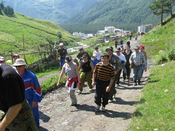 - Да, действительно мы ставили ряд задач связанных с воспитанием молодежи. Как известно один из признаков цивилизованного человека это умение наблюдать, ценить, восхищаться красотой. Когда видишь красоту гор, нерукотворную, божественную, то не восхищаться этим нельзя. Получаешь действительно эстетическое удовольствие. И невольно эта чистота, красота переделывает человека изнутри, он духовно очищается, появляется стремление гармонировать с этой красотой. Гармонируя с окружающей средой, человек пытается сохранить ее первозданную свежесть. С гордостью могу сказать, что молодые люди, которые с нами поднимались на Эльбрус, уделяли экологической стороне восхождения очень большое внимание - без нашей подсказки убрали все целлофановые пакеты, обертки, пластиковые бутылки, которые валялись то тут, то там, нарушая мирную идиллию.