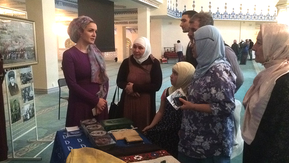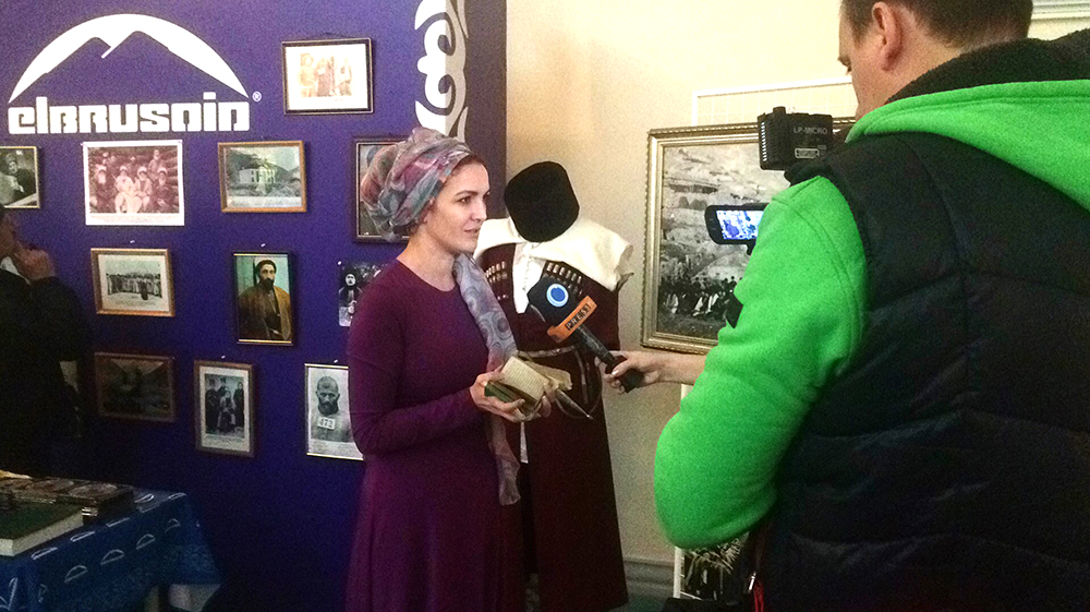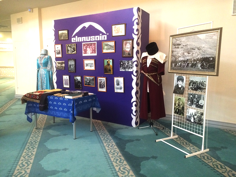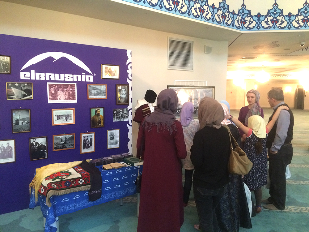В это же время была развернула экспозиция карачаево-балкарского народа, организованная Фондом «Эльбрусоид». На стенде представили фотовыставку истории ислама в Карачае и Балкарии, предлагали всем гостям ознакомится с продукцией фонда, Кораном, переведенным на карачаево-балкарский язык и зикрами на стихи Кязима Мечиева. Особый трепет у посетителей вызвали два хымайыла, ориентировочно 1830-1840 гг. издания из частной семейной коллекции. Так же мы представили предметы для намаза: коврики, платки, четки. Ну а мимо наших национальных костюмов не прошел никто. Русские, татары, узбеки, чеченцы и ингуши, представители Дагестана, таджики, абазины, чуваши, турки и даже гости из Республики Чад узнали о том, кто такие карачаево-балкарцы и как они живут.