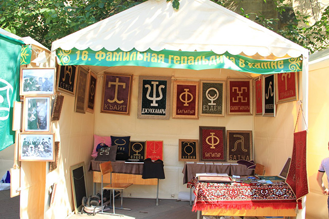 Очень заинтересовала карачаевскую часть гостей выставка фамильной геральдики. Почти каждый здесь нашел картину со своим фамильным знаком. Большой популярностью также пользовались карачаевские ножи (бычакъ).