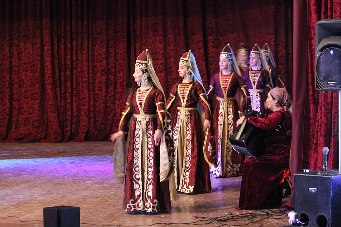 Дети из Эльбруса наглядно показали нам основные значимые части обрядовых танцев, которые восстановил Мухтар Чукаевич. А ведущая рассказала нам о значении каждого элемента различных танцев. Напишу что запомнила :думаю: ))