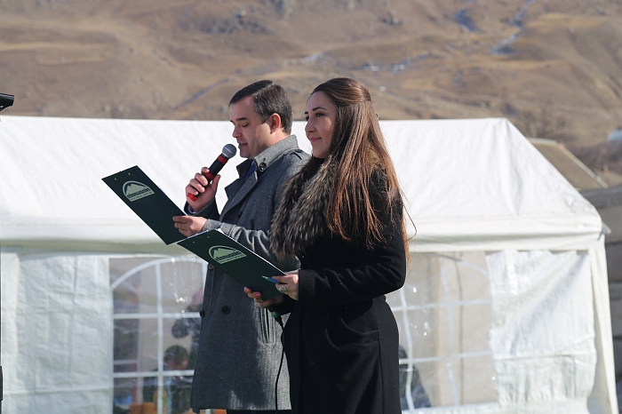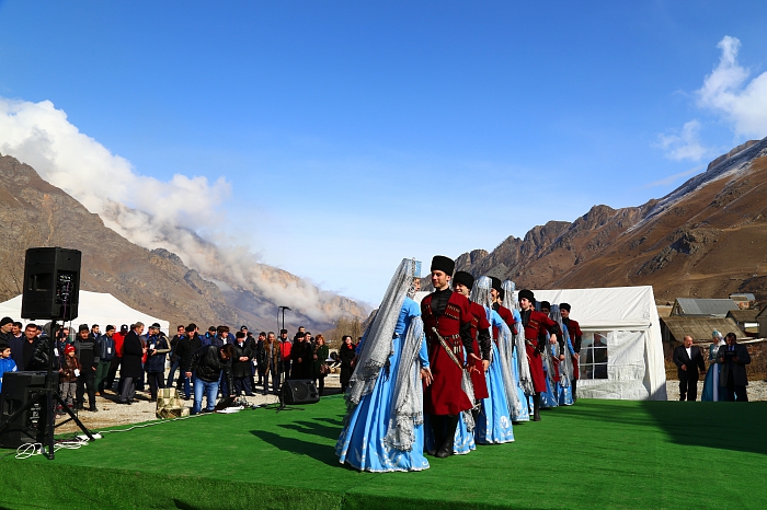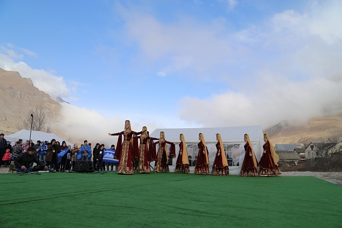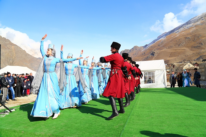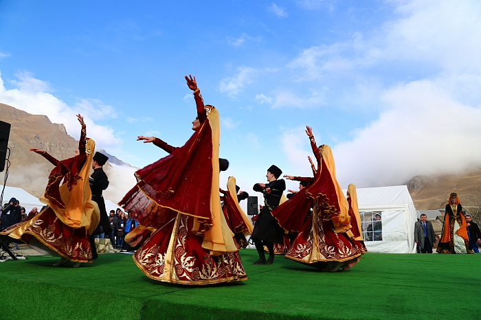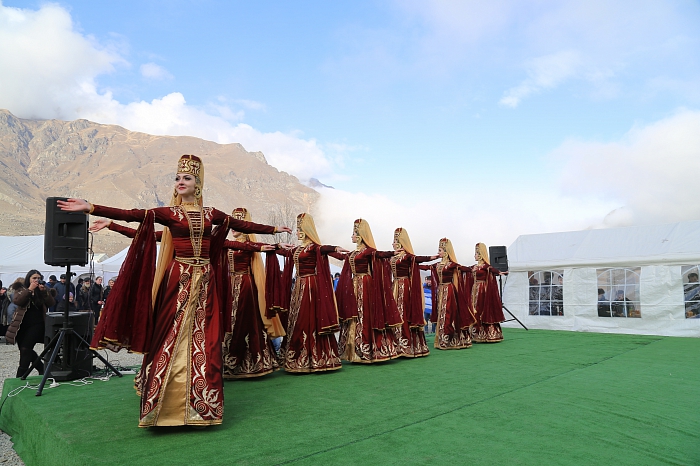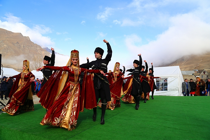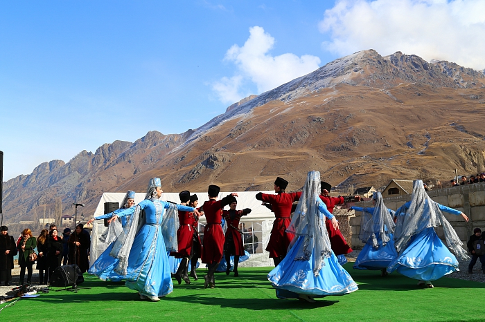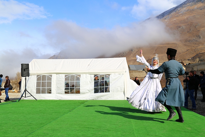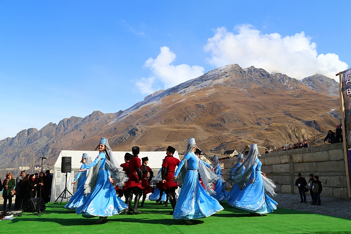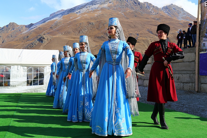 Солисты ансамбля Балкария Рамазан Аскеров и Лейля Гуртуева, танец Къол жаулукъ