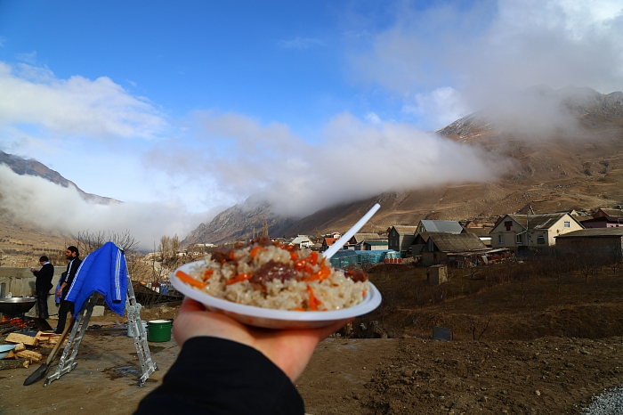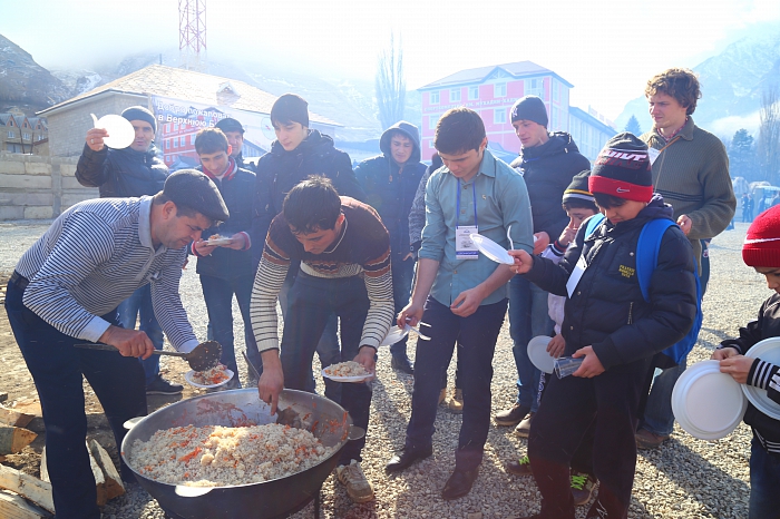 Наши парни и девушки еле успевали угощать всех желающих В тот день даже у плова, и то есть селфи |