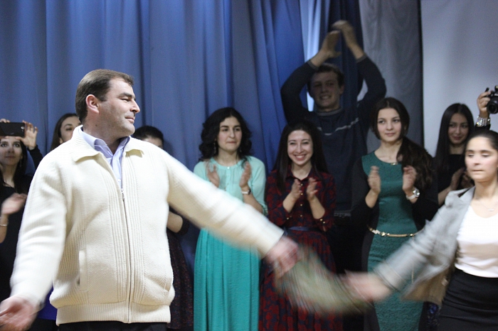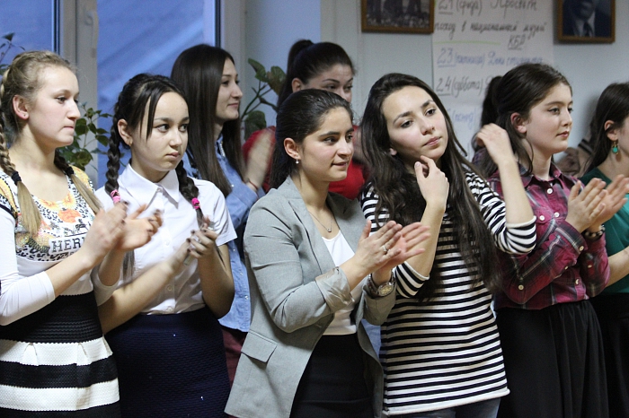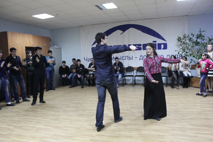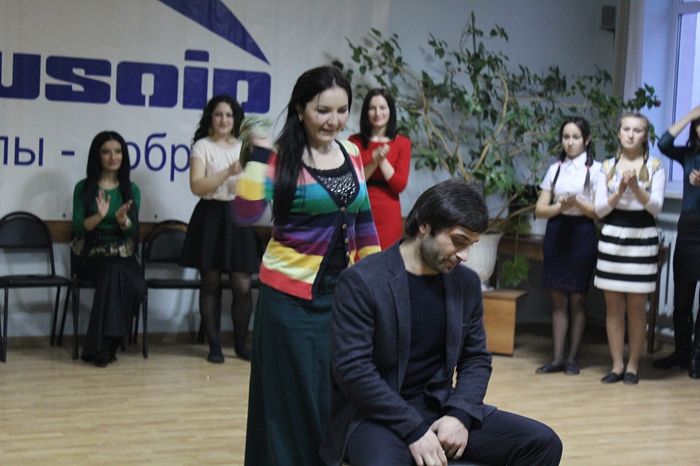 Веселую атмосферу праздника поддержали активисты фонда: Саракуев Хасан, Гогуев Арафат и Акаев Ислам, подготовившие сценку «Сдача экзамена», которую зрители приняли с восторгом.