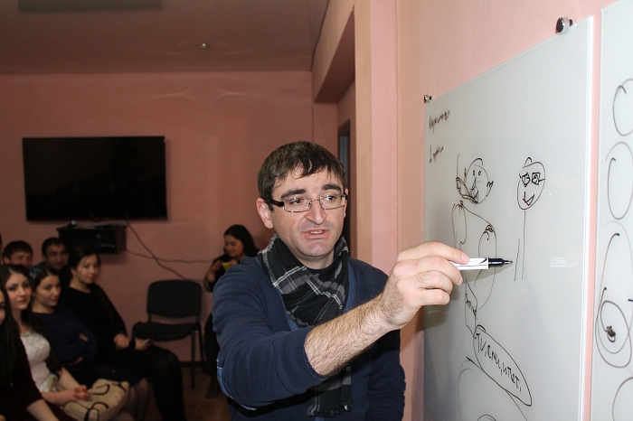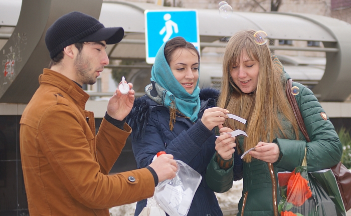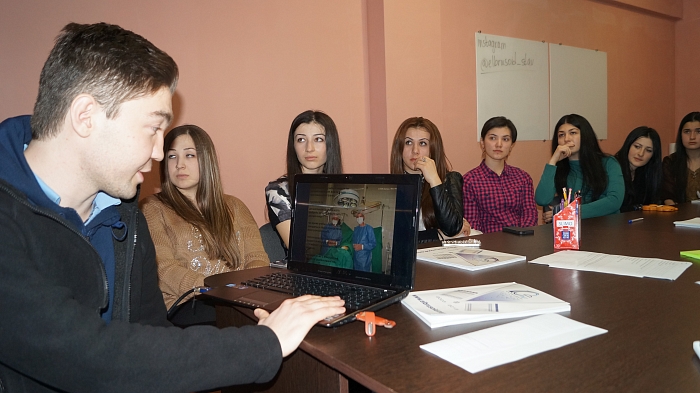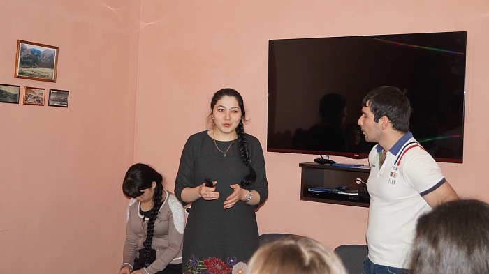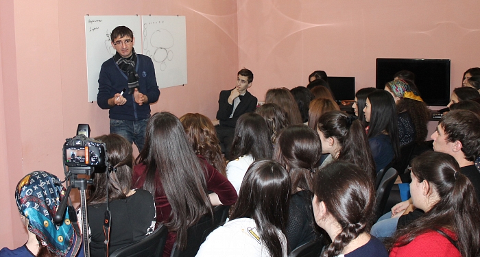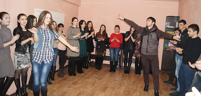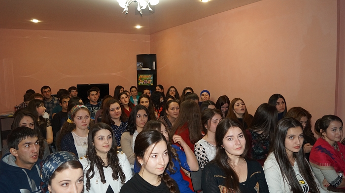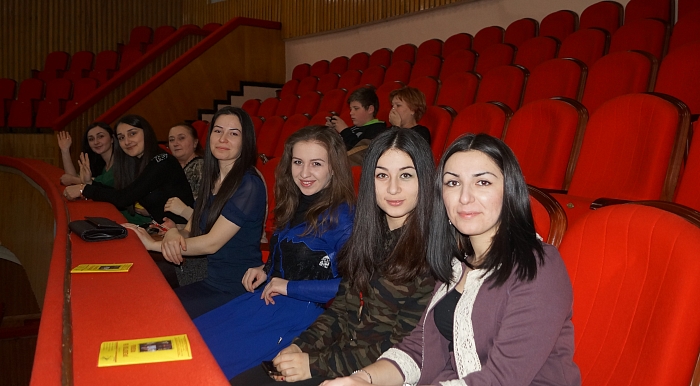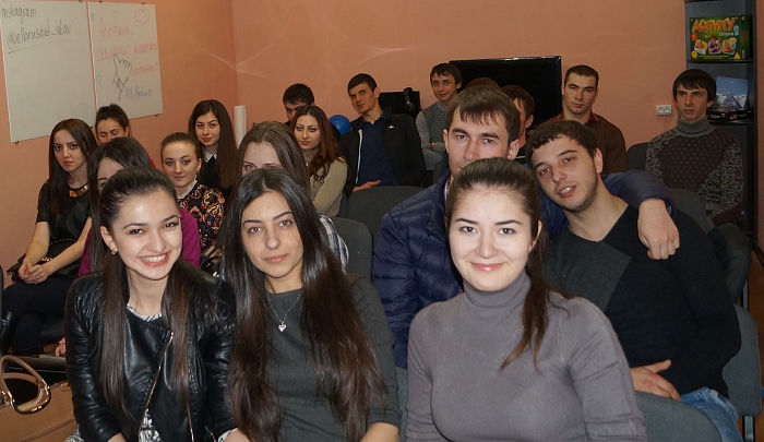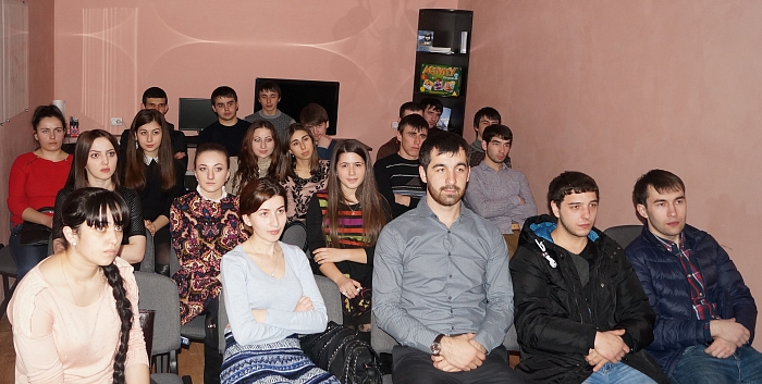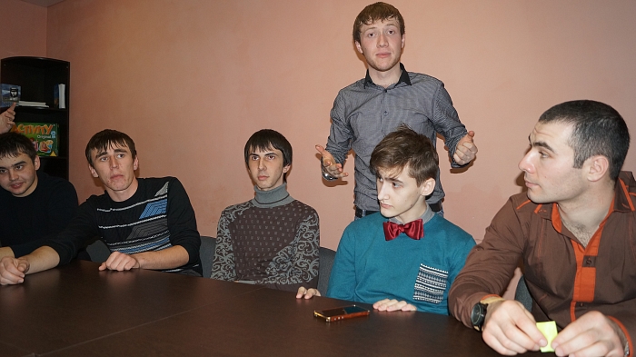 Мне как человеку весьма сдержанно относящемуся к Кире Найтли сложно понять, почему так популярна экранизация 2005 года. Хотя на мой взгляд есть более высокохудожественные фильмы по романам Джейн Остин. Впрочем, речь не о моих вкусах))) Одно могу сказать точно.Переводчики очень точно подметили схожесть обычаев Англии эпохи Джейн Остин с нашими карачаево-балкарскими реалиями. Хохот в нашем "кинозале" практически не прекращался все два часа показа. Так до боли знакомыми становились курьезы в сюжетной линии в народном дубляже Впрочем, если начинать репортаж с места событий...начался наш вечер с небольшой лекции от Алибека Узденова, на форуме больше известного как Мозг спб))) Алибек рассказал собравшимся, 99% аудитории, кстати, студенты 1-3х курсов ВУЗов Ставрополя, о том, что такое социальное проектирование. В краткой вводной лекции нам пояснили, зачем это нужно, какую пользу приносит обществу и самой молодежи работа над подобными проектами. Были рассказаны истории успеха ребят, авторов лучших проектов прошлого года. Заинтересовавшихся проектной работой ребят было много, хотя многие студенты слышали о социальном проектировании впервые. Надеемся, это не последняя наша встреча с Алибеком, и он обязательно приедет к нам делится опытом и мастерством! Хочется верить, что у этого начинания большое будущее. Пока добровольцы превращали наш конференц-зал в киноклуб, остальные решили размяться во дворе, вспомнить молодость и поиграть в ручеек))) После небольшого перерыва начался сам фильм. В какой то момент поймала себя на четком де-жавю))) давным давно, в детстве, еще в те времена, когда на целую деревню приходился один телевизор, и для просмотра чего-то значимого к обладателю "Радуги" набивался полон дом односельчан . Так и мы, с девизом в тесноте, да не в обиде, сидели плотными рядами, плечом к плечу, внимая трагикомедии разворачивавшейся в семье Беннет. Фильм для дубляжа выбран весьма удачно на мой взгляд, он не только популярный, но и насыщен правильной литературной речью, сложными оборотами. Многие слова в фильме для меня были открытием, так что перевод будет полезен всем, кто как и я лишь постигает глубины родного языка. Особую радость в финале нам доставили фото актеров дубляжа в образах своих героев))))) Либерти , я подозревала, что образ английской барышни - это твое В окончании моего несколько сумбурного "репортажа" хочу поблагодарить Алибека за отзывчивость и мобильность!)))) п.с. фото Зухры Биджиевой, за что ей огромное спасибо!))) |